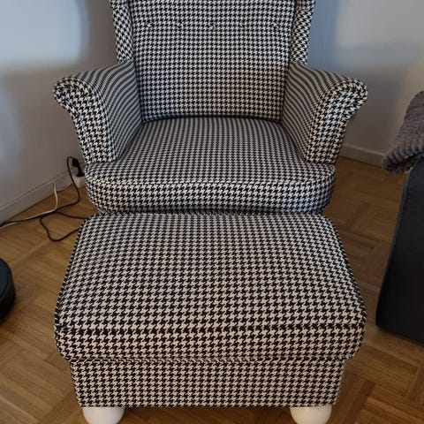 Strandmon fåtölj från IKEA med tillhörande fotpall