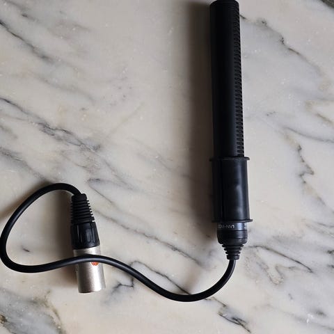 Sony ECM-969 kondensatormikrofon, komplett med tillbehör inklusive vindskydd, kablar och monteringsutrustning i originalfodral. Detta är än idag en riktigt bra stereomikrofon.