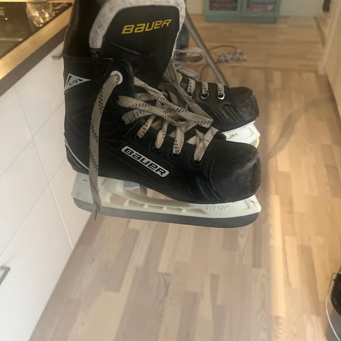 Svarta skridskor junior Bauer storlek 4 (37,5) med innermått 23,5 cm. Saknar innersula men har nya skosnören.