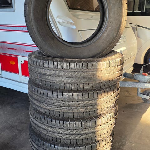 4 st mycket bra dubbade Michelin däck på aluminiumfälgar, körda ca 150 mil. Storlek 225/75R16C, M+S.