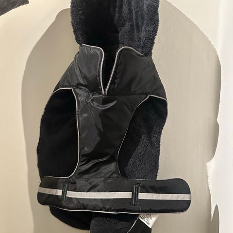 Hundtäcke med grön och svart rutigt mönster. Täcket är anpassat för hundar och har en praktisk design för att ge skydd och komfort. Från Onehorse. Sparsamt använd