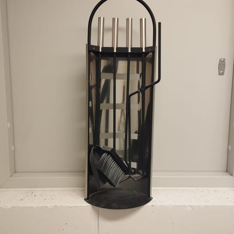 Säljer tillbehör till braskamin i mässing som underlättar eldningen och ger ett snyggt helhetsintryck vid kaminen. Allt är i gott skick och passar de flesta braskaminer.