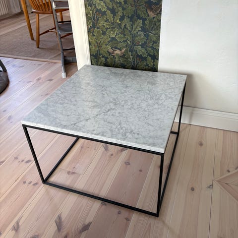Real White Carrara marble stone coffee table with metallic legs, Inga defekter på möbeln