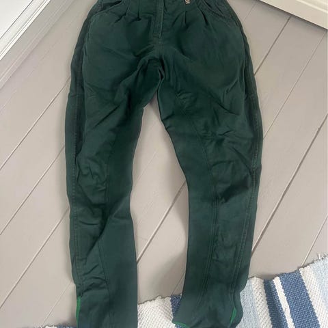 Byxorna har detaljer och förstärkningar på knä och säte för bättre grepp och hållbarhet vid ridning.