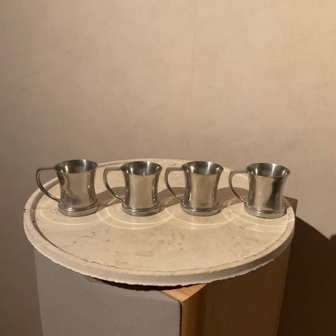 2 handgjorda tennbägare — unikt hantverk, vintage