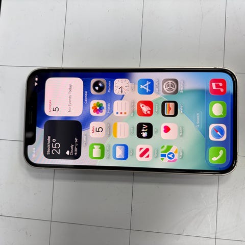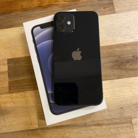 Apple iPhone 12 mini mobiltelefon med 64 GB lagringsutrymme i svart färg. batterikapacitet på 77 %