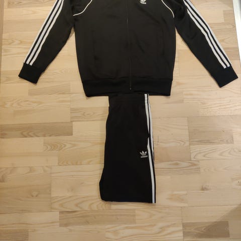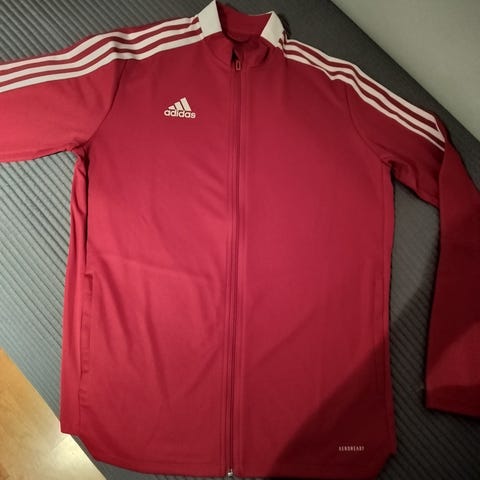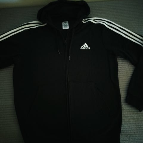Adidas Träningsoveralljacka i storlek M för män. Färgen är svart med vita detaljer. Jackan är avsedd för träning och är tillverkad i ett material anpassat för sportaktiviteter.