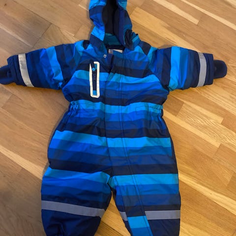 Lindex barnoverall i storlek 110, blå färg och tillverkad i polyester. Overallens egenskaper inkluderar vattentäthet på 10 000 mm, tejpade sömmar, andningsförmåga på 5000 g/m2/24h, vindresistent och slitstark design. Passar både pojkar och flickor.