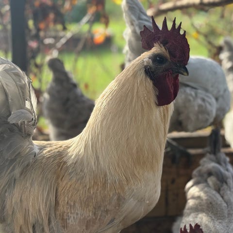 Till salu : mycket goda stora ägg från frigående glada höns som bor i egen gård på landet .