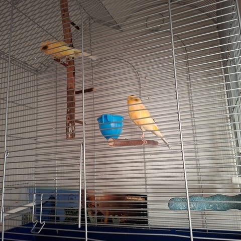 Kommer med bur och tillbehör