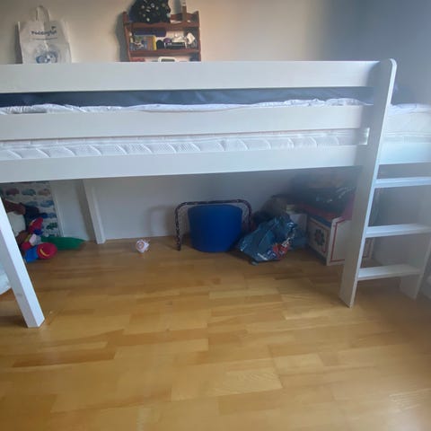 Madrass 90x200 från Emma Sleeping (nypris ca 3 000 kr) säljs tillsammans med sängen för 1 000 kr.