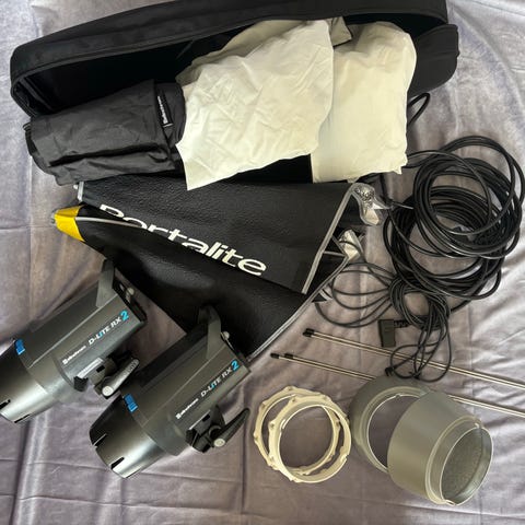 Sparsamt använda, de ligger mest och samlar damm så säljer dem. Dem är perfekta ”on location”. Vet inte hur bra batteriet är men fungerade bra när jag körde dem för ett år sen lite drygt.