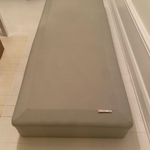 Bäddmadrass medföljer, kan tvättas i 60 grader, se bild. Ben svarta/trä medföljer också.