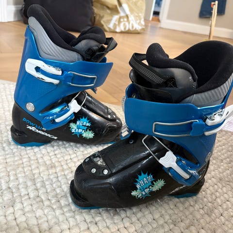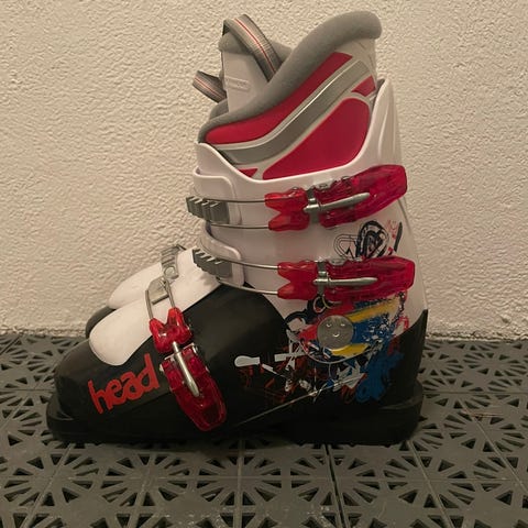 Skidpjäxor 23,5 cm vilket är ca storlek 37 i vanliga skor. Har använts av två barn och har en del synliga repor men är fullt fungerande. Skidpjäxorna har tre spännen för justerbar passform. Nypris för motsvarande modell är ca 1200kr.