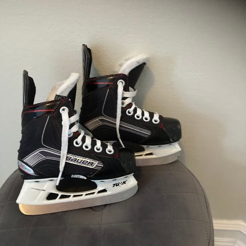 Fina Bauer skridskor i storlek 28. CCM hjälm med galler i minsta storleken typ 48-50 samt passande ishockeyklubba. Nypris för allt är ca 1500kr. Allt i mycket gott skick.