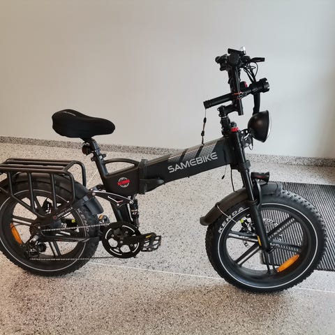 Cykeln går att vika ihop för simpel tramsport.