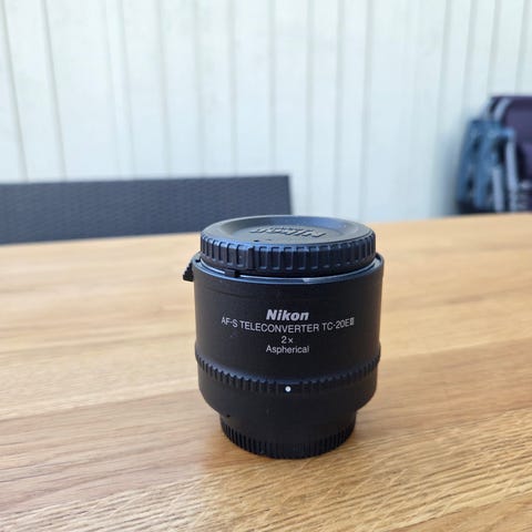 Telekonverter från Nikon, TC-20E III AF-S. Komplett med tillbehör i originalkartong. Telekonverterlock BF-3A, bakre objektivlock LF-1, mjuk väska CL-0715 och manual medföljer.