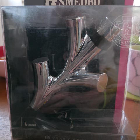 Handdukstork i metall med flera ribbor för upphängning av handdukar eller liknande. Monteras på vägg, lämplig för badrum eller tvättstuga. Ansluts till el för uppvärmning.