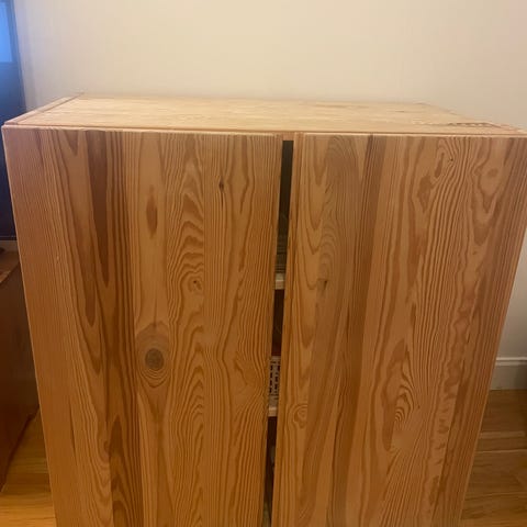 Pga ommöblering säljer vi vårt fina Ivar-skåp från IKEA med skåpsluckor i rotting i samma serie. Vi har dessutom adderat sidor i Furu på Ivar- stommen så det blivit mer som ett