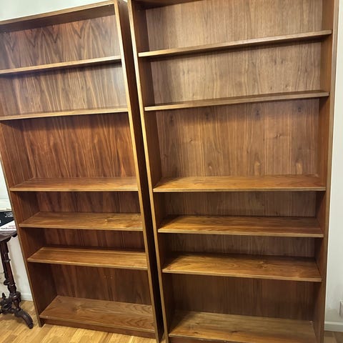 2st Bokhyllor i Björk från danska Bo Reolen. Går att stapla eller ställa ihop. En av hyllorna med låda. Socklar finns till båda om det önskas. Hämtas i arbetslokal i Liljeholmen.