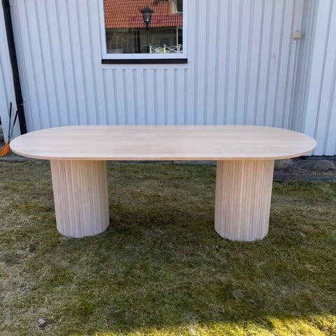 Mycket fint skick! Dynorna på stolarna är fläckfria. Sparsamt använt! Inga djur i hemmet! Ingår även en iläggsskiva på 60 cm.