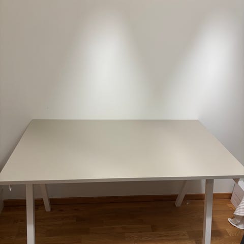 Trotten skrivbord 120 x 70 cm, använt sparsamt i ca 1 år, mestadels stått på kontoret orört. Beige med vita ben. Inköpt för 1700 kr 2024.