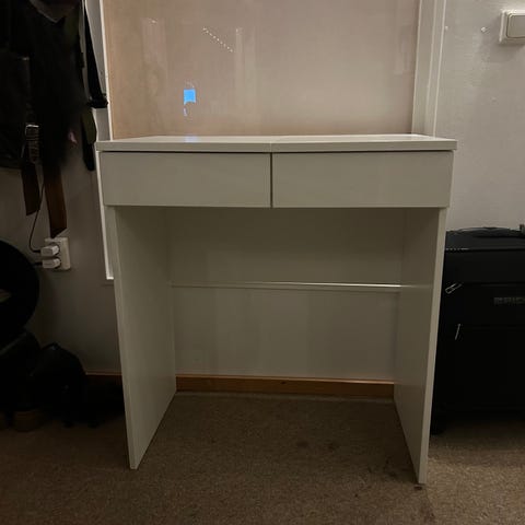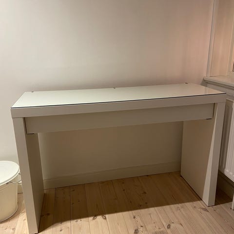 Skrivbord/sminkbord från IKEA serie Malm. Fint skick men med lite repor på glasskivan.