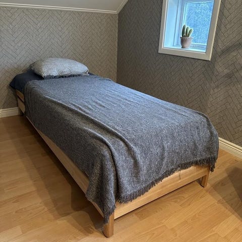 Gedigen sängram av furu