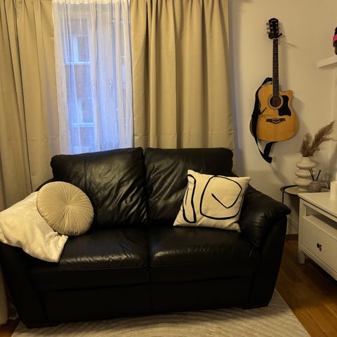 Skinnsoffa och fåtölj i svart