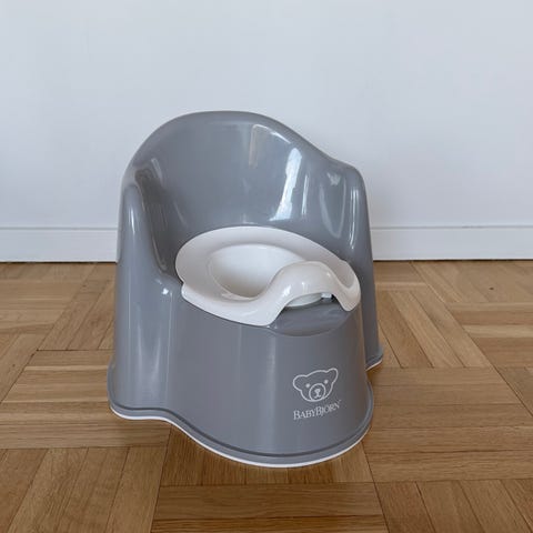 Potta med ryggstöd från BabyBjörn. Grå. Knappt använd så ser ut som ny!
