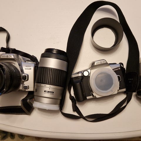 Minolta Dynax 9xi, kamera utan objektiv. Kameran fungerar inte och säljs som hobby- eller utställningsobjekt. med originalbatteripaket