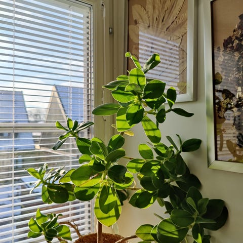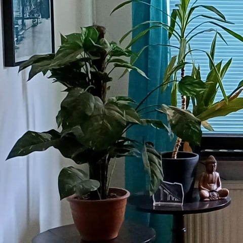 Fredskalla krukväxt med gröna blad. Passar för inomhusbruk och bidrar till förbättrad luftkvalitet.