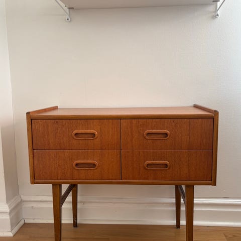 Svart byrå med tre lådor. Vintage. Ej originalfärg.