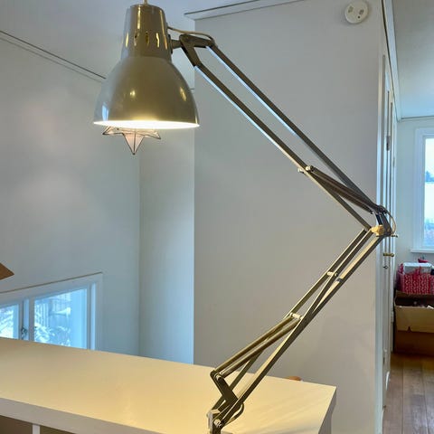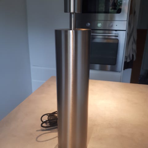 Fullt fungerande bordslampa i stål. Bra skick. Det går att ställa in ljusstyrkan från låg till hög.
