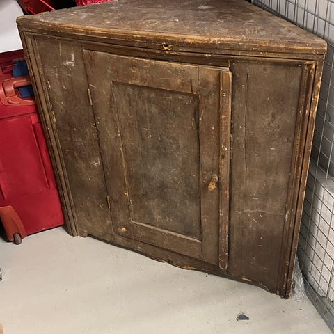 Hörnskåp i rosa med glasdörr och flera hyllplan. Skåpet kan lätt målas om och får plats i vanlig bil - hämtas upp och säljs billigt pga flytt! Mvh