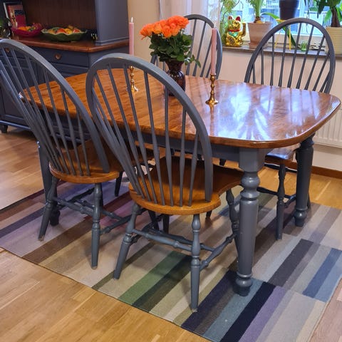 Säljer mitt egentillverkad bockbord samt stolar som jag gjort i skolan.