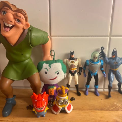 Set med olika fantasyfigurer inklusive en stor elefant med rustning. Antar dessa heter Papo
