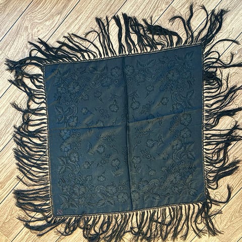 Varm klarblå ylleschal som är handvävd, tvättad och tovad. Mått 50 cm X 230 cm.