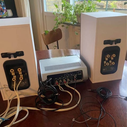 Systemet användes sparsamt ca 4 år och har därefter förvarats torrt. Mycket ren och exakt ljudåtergivning med snabb, kontrollerad bas – ett tydligt steg över soundbars och kompakta trådlösa lösningar.