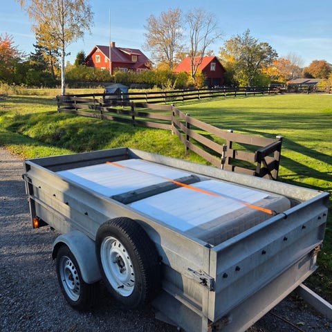 Släpvagnen är nyligen besiktigad och godkänd, nästa besiktning först om 2 år (november 2027). Stabil och praktisk med gallerlämmar, passar utmärkt för trädgårdsarbete. Redo att användas direkt.