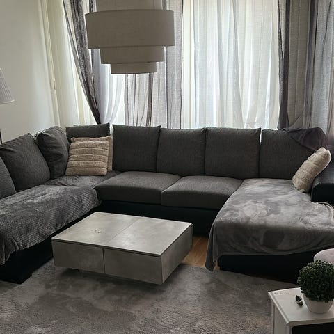 Grå exklusiv och elegant 4-sitssoffa i trä och textil från varumärket CANTUS. Denna lyxiga soffa erbjuder relaxfunktion vilket innebär att du enkelt kan fälla upp benstöd för extra komfort. Produktens mått är ca: 303,5/222 cm (B/H) Inköpt på XXXLUTZ i augusti 2023. Mycket bra skick.