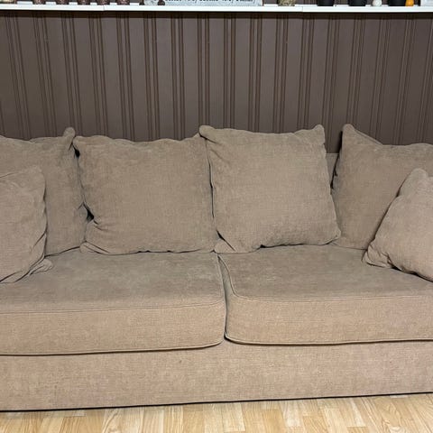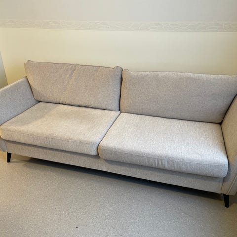 3-sits soffa med fotpall och nackkudde, köpt på Mio. Nypris ca 10.000:-.