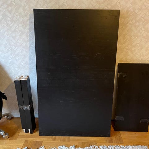 Bordsskiva i massiv svart ek. Skivan är 5cm tjock. Köpt på BoConcept. De svarta benen är köpta på IKEA och går lätt att byta till andra.
