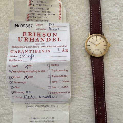 Med ny Besiktnings-/ värderingsutlåtande fr Sverigs Handelskammare dvs Omegas serviceverkstad
