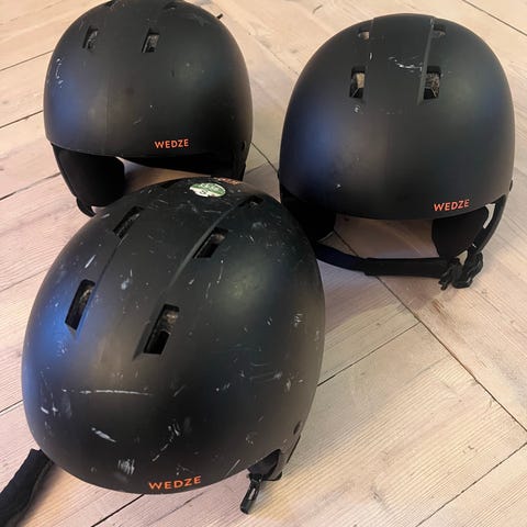 Hjälmen till vänster storl xxxs, 48/50. Hjälmen till höger stl xxs, 51/52