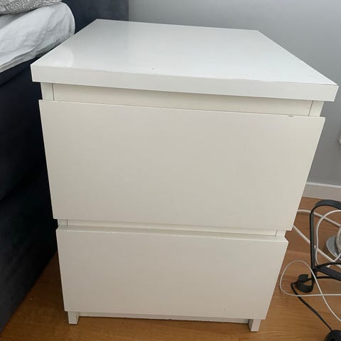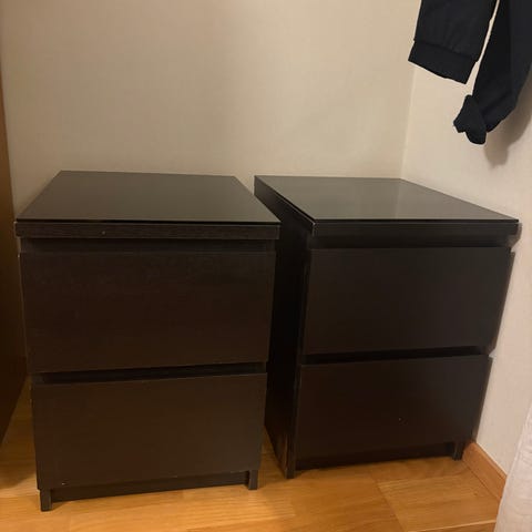 Säljer två stycken sängbord modell Ikea malm med glas på ytan och två lådor. Sparsamt använda.
