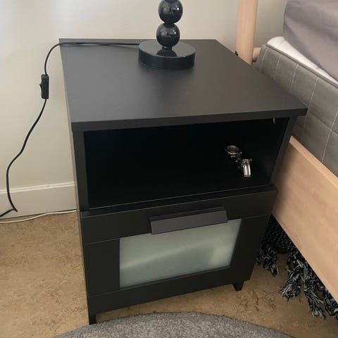 IKEA avlastningsbord tillverkat i bambu med en låda och hyllor i serien NORDKISA. Nypris 995 kr. Se min profil för liknande produkter.