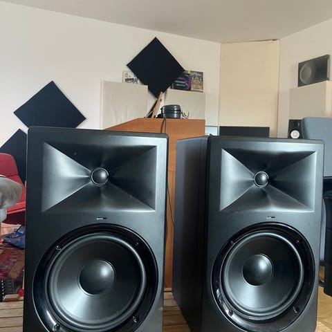 JBL 305P MKII studio monitorer i bra skick. Plasten/ytan har släppt i vissa hörn men inget som påverkar ljudet.