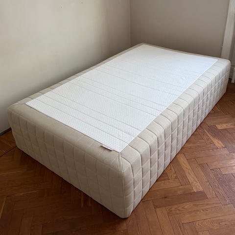 Den är sparsamt använd i ett gästrum och därmed i nyskick. Rök-, djur-och barnfritt hem. Bäddmadrasskydd sedan dag ett och det finns inga fläckar eller märken. Varken resårbotten eller bäddmadrass finns att köpa på IKEA längre. Nypris: 6150 kr, säljes för 4500 kr. Finns i Falsterbo på bottenvåning, hämtas på plats och bärhjälp krävs då den står i ett trångt rum och vi inte kan hjälpa till att lyfta eller bära. Betalas med Swish.