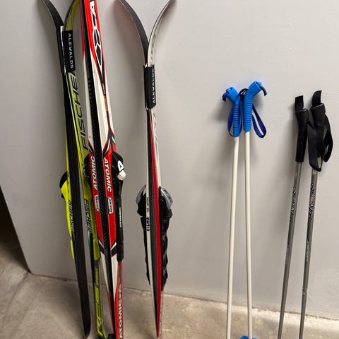 - Längdskidor Fisher Ridgecrown, 160 cm. Vallningsfria/fiskjäll. Salomon SNS bindning. Inkl Swix stavar 115 cm.